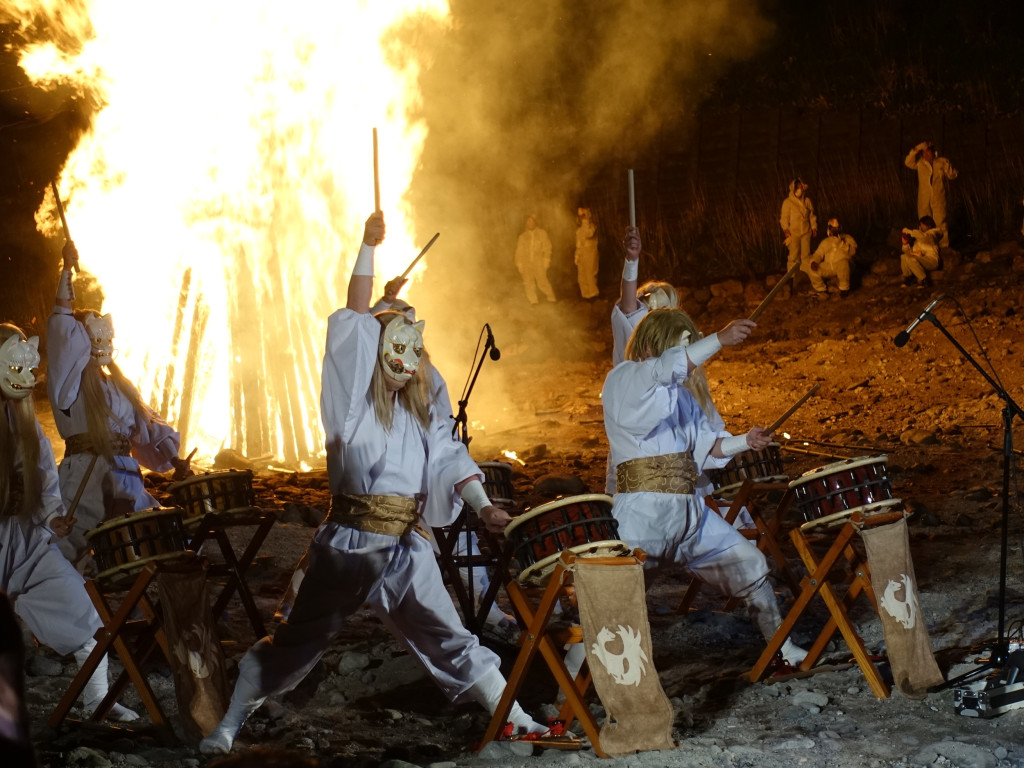 九尾の狐伝説息づく那須湯本で、幻想的な御神火が夜空を焦がす!
